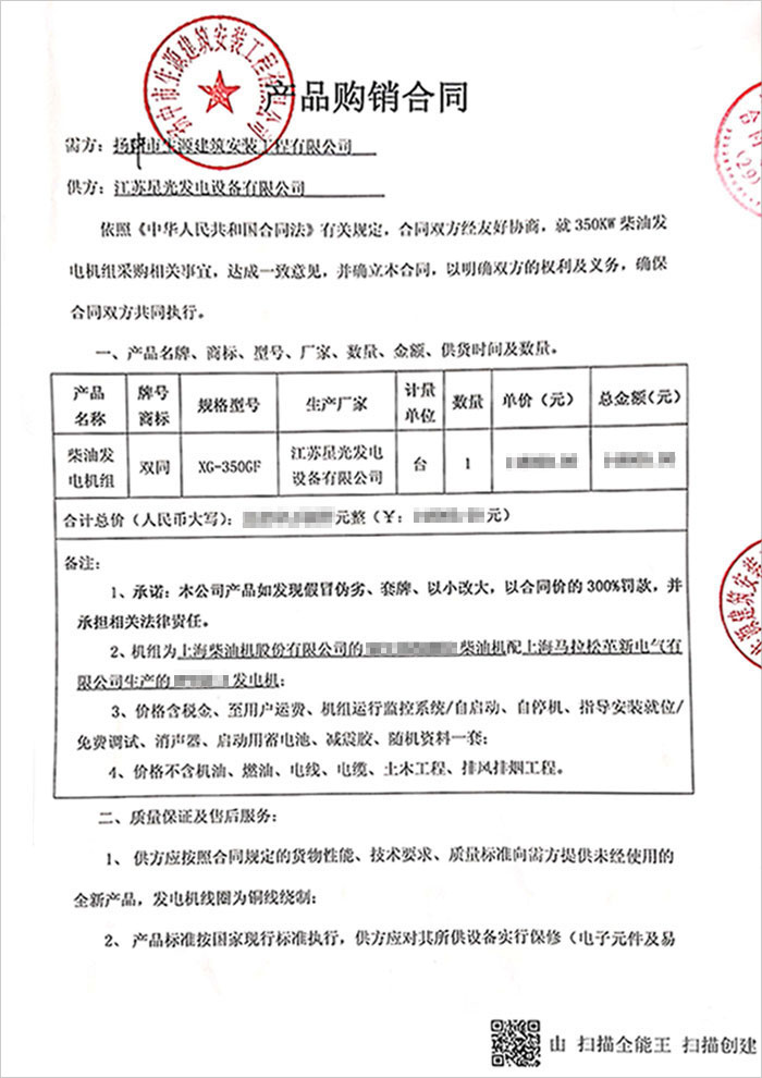 江苏星光动力集团 >> 新闻动态 >> 恭喜我公司和扬中市生源建筑安装公司第二次合作,成功签订一台350KW上柴发电机