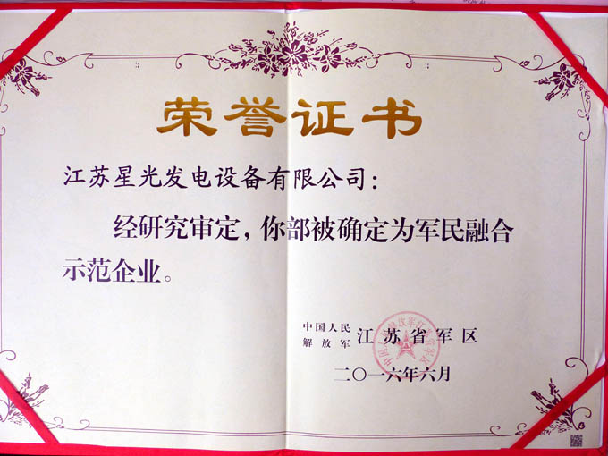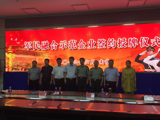2016年6月21日,在南京举行的军民融合示范企业签约授牌仪式会议上,我公司被江苏省军区确定为“军民融合示范企业”。
