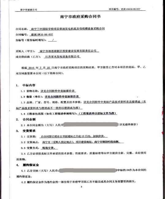 2016年8月,星光动力集团自主创新,生产的节能环保型发电机组凭借精湛的技术,优良的品质和完善的售后服务成功与南宁市相思湖新区投资建设发展有限责任公司签订南宁三中国际学校项目柴油发电机组及母线槽设备采购合同。