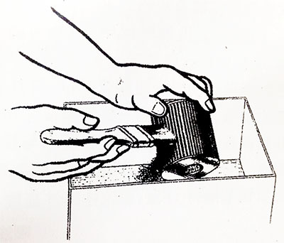 发电机组燃油滤清器用两个M8-6H螺钉固定在机体或支架上,用户在使用中如发现供油不通畅,则有滤芯堵塞的可能。此时,应停车放掉燃油,可直接在柴油发电机组上松开拉杆螺母,卸下外壳,取出滤芯(如图2所示),然后将滤芯浸在汽油或柴油中用毛刷轻轻地洗掉污物(如图3所示),如果滤芯破裂或难以清洗,则必须换新,然后按图1所示装好,并注入清洁的燃油。