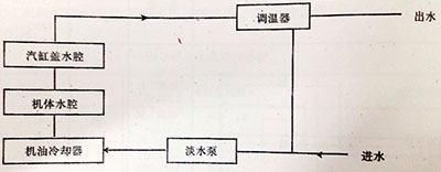 柴油发电机组工作时,要求进水温度不低于60℃,因此,对开式循环冷却系统的用水,应采取适当的措施以调节适宜的进水温度。一般可在水源与柴油发电机组之间装一只混水桶,将柴油发电机组的进出水口和从水源来的水汇接于混水桶,靠控制进入混水桶的冷水量,即可控制柴油发电机组的进水温度。