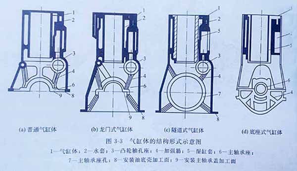 柴油发电机气缸体常见的结构形式一般有四种,如下图所示: