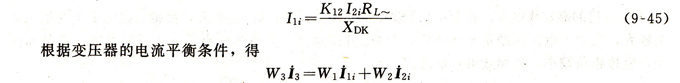因为W1绕组的负载XDK为纯电感性的,W2的负载RL~为纯电阻性的,所以I1iI2i在相位上相差约90°,即